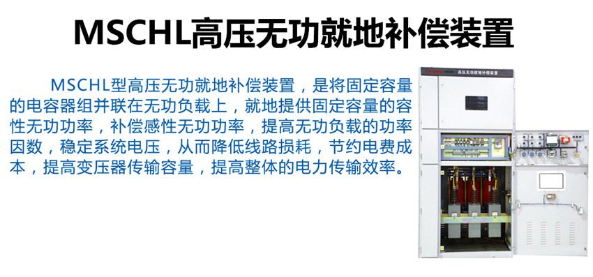 MSCHL型高壓無(wú)功就地補(bǔ)償裝置,是將固定容量的電容器組并聯(lián)在無(wú)功負(fù)載上,就地提供固定容量的容性無(wú)功功率,補(bǔ)償感性無(wú)功功率,提高無(wú)功負(fù)載的功率因數(shù),穩(wěn)定系統(tǒng)電壓,從而降低線路損耗,節(jié)約電費(fèi)成本,提高變壓器傳輸容量,提高整體的電力傳輸效率。